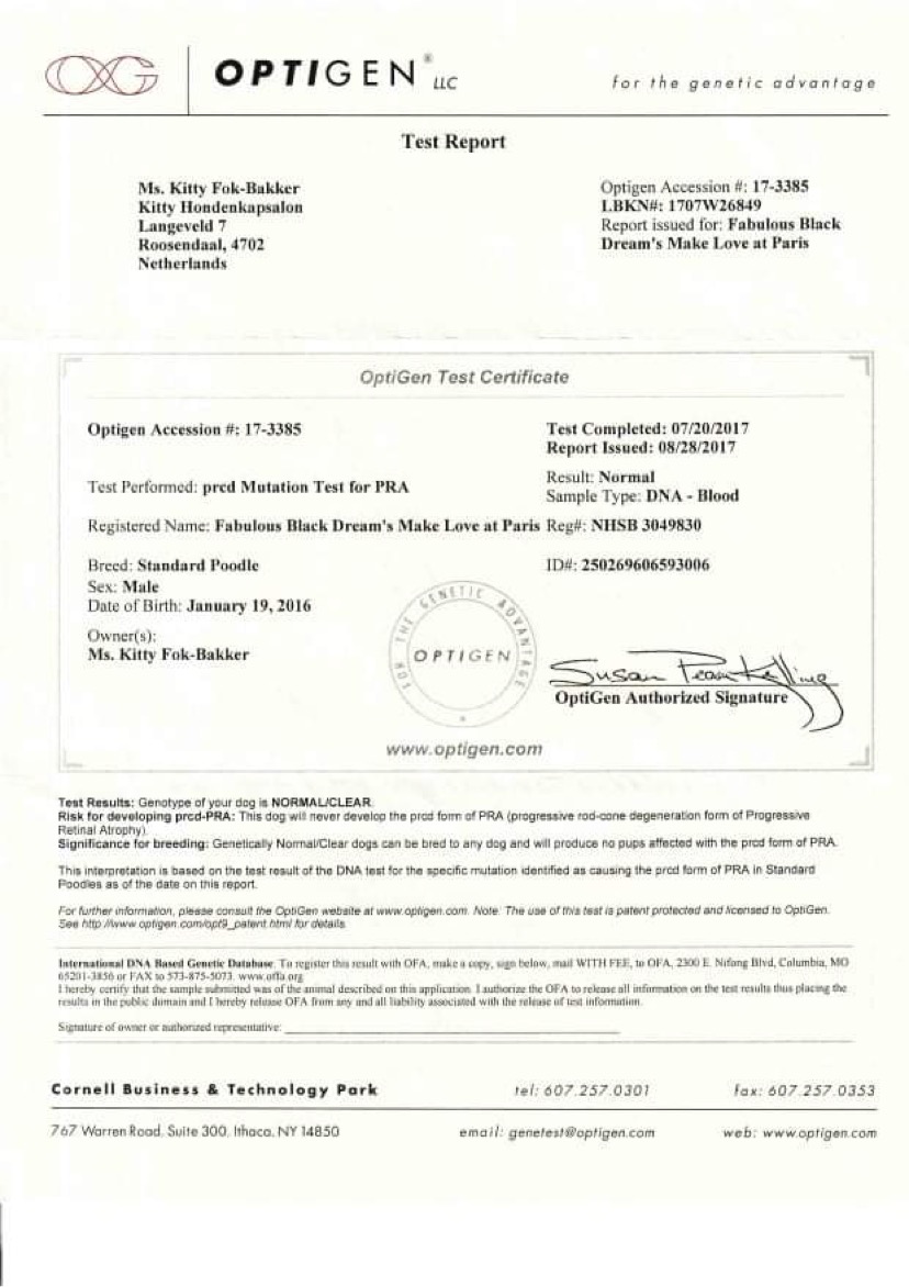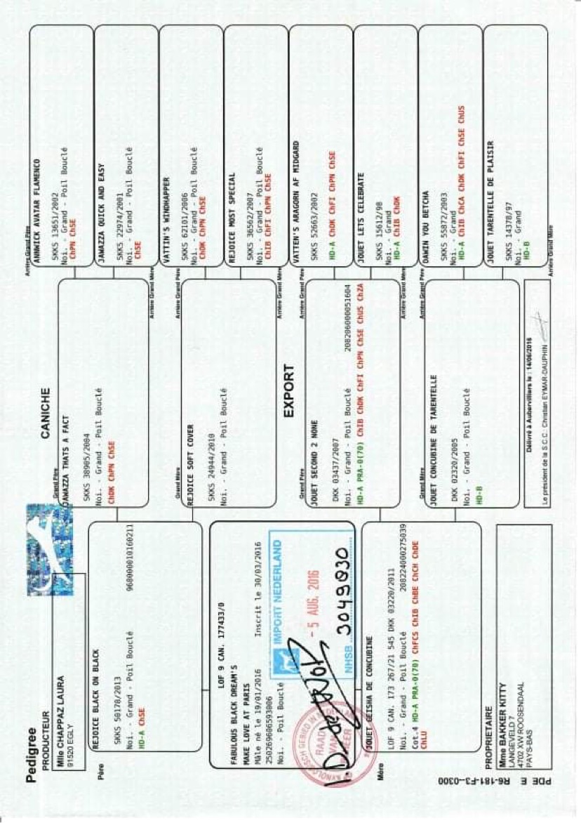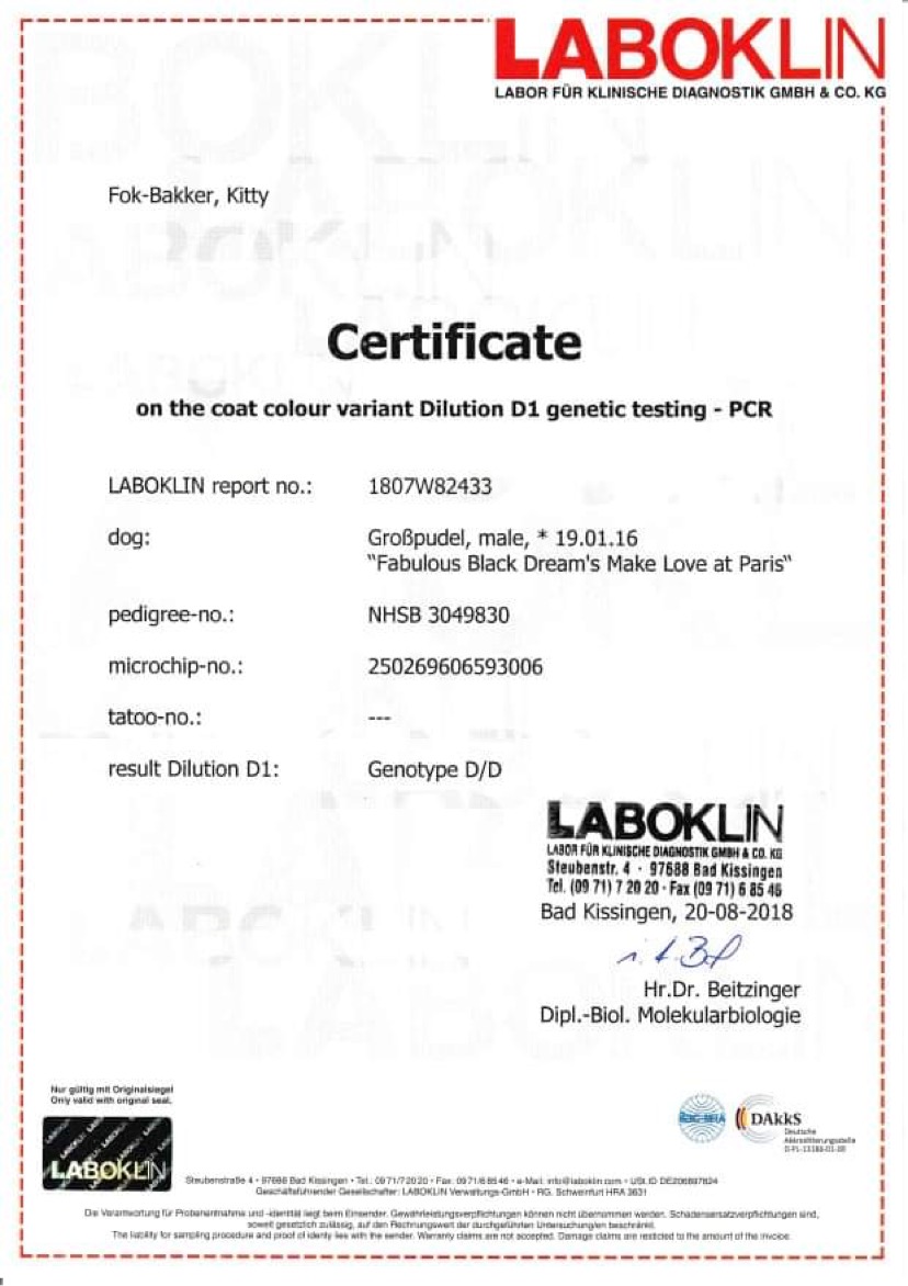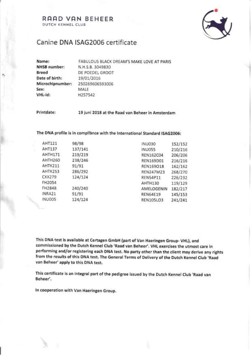 Zde jsou dokumenty tatínka našeho prvního vrhu A - Fabulous Black Dreams Make Love at Paris "Jackson".