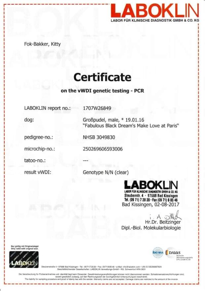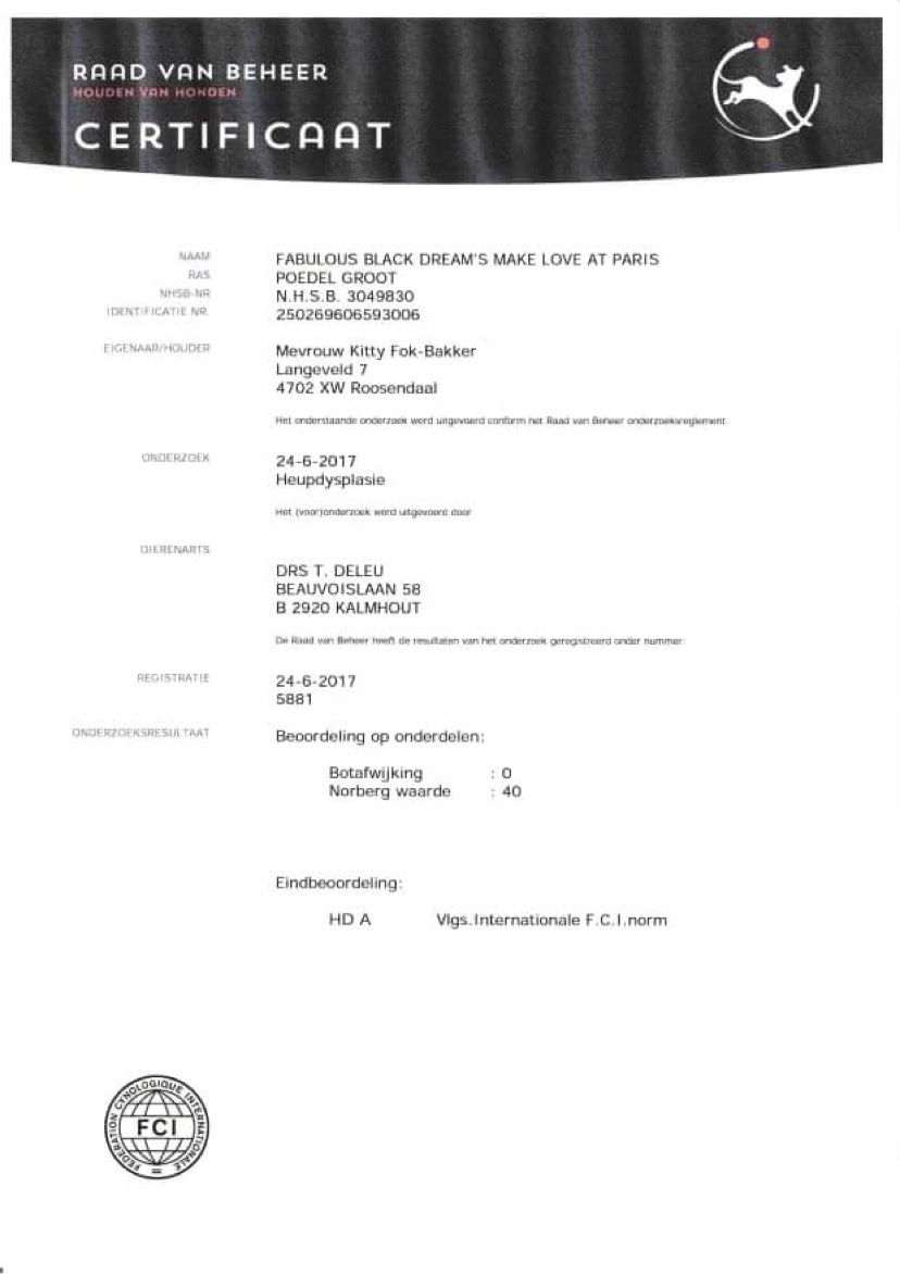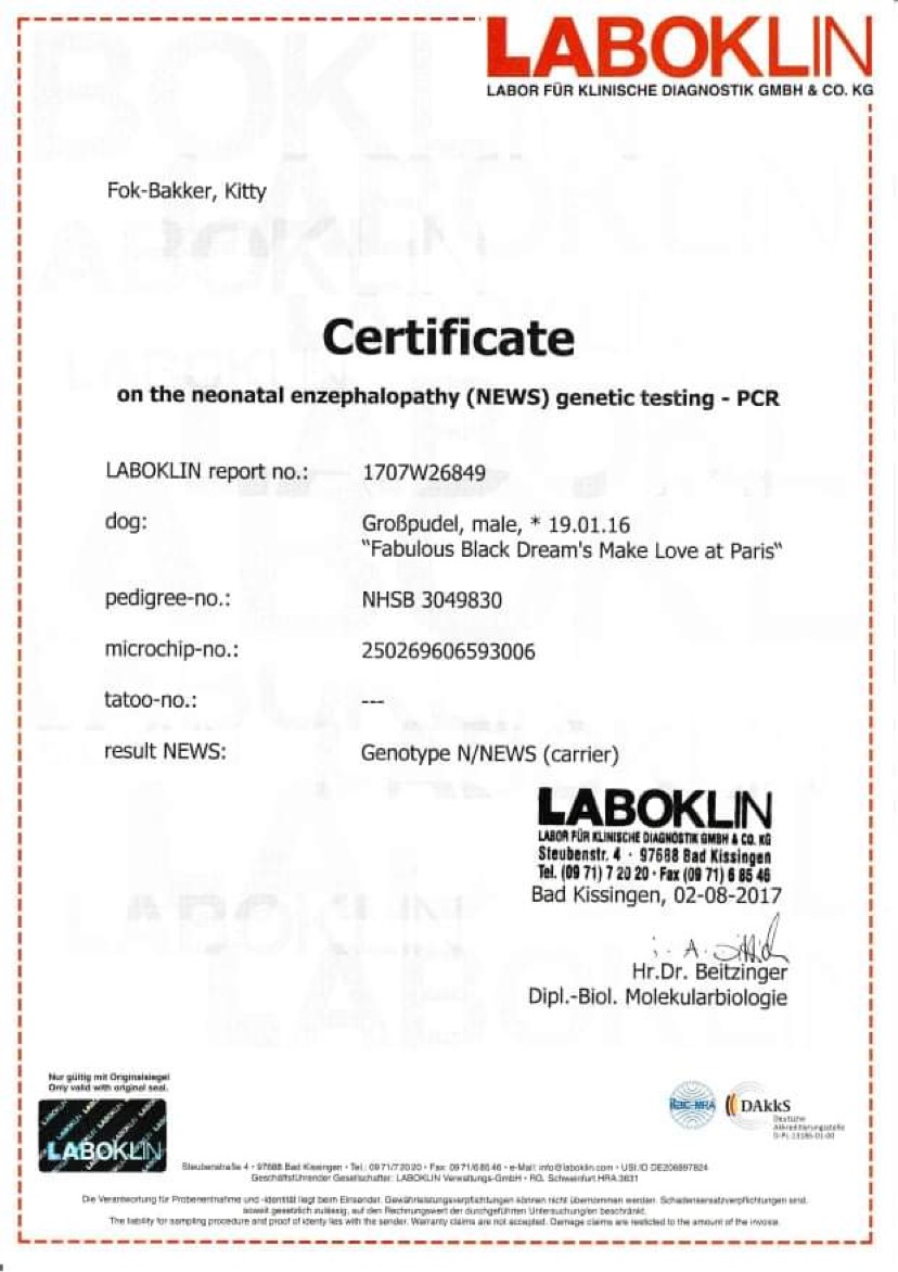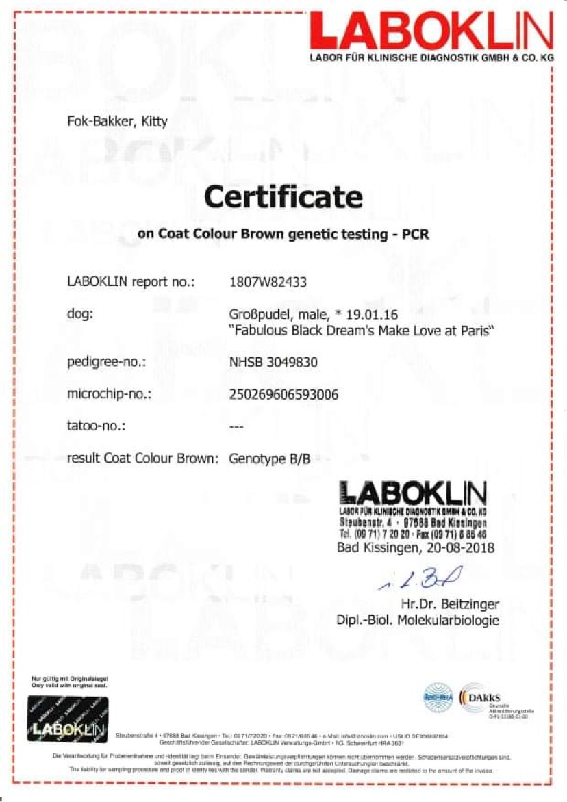 Zde jsou dokumenty tatínka našeho prvního vrhu A - Fabulous Black Dreams Make Love at Paris "Jackson".